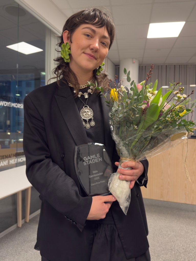Föreningens vice ordförande Magnus Alexandersson delade ut priset i samband med föreningens årsstämma. I sitt tacktal avslöjade Clara Fina att hennes första möte med Gamlestaden 2019 inte var helt positivt.